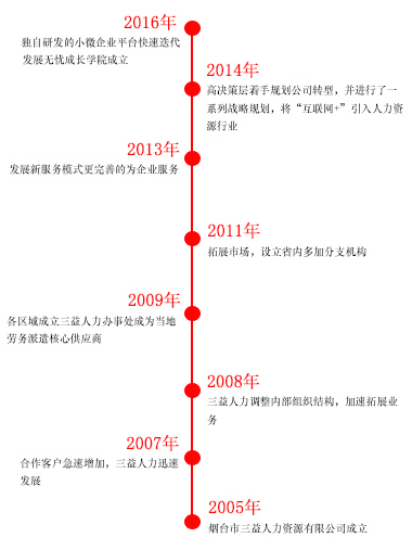 2008年8月,鄄城縣三益人力資源開(kāi)發(fā)有限公司正式成立,鄄城公司的成立為公司今后的發(fā)展發(fā)揮重要作用。煙臺(tái)三益人力資源有限公司總部于2009年07月06日在煙臺(tái)工商局注冊(cè)成立。在公司發(fā)展壯大的10年里,我們始終為客戶提供好的產(chǎn)品和技術(shù)支持、健全的售后服務(wù)。公司先后在三十里堡、科信大廈、業(yè)達(dá)智慧谷、天宇市場(chǎng)開(kāi)設(shè)了店鋪。2017年3月,三益威海分公司成立,大大拓寬了我們的國(guó)內(nèi)市場(chǎng)。